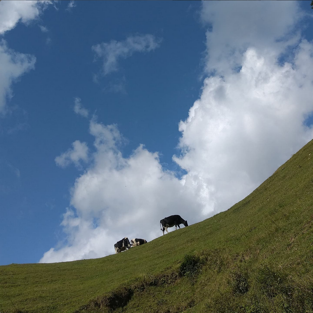 高知県南国市白木谷、高知の平野を眼下に下ろす、広大な牧場で、牛たちは自由に散歩しながら芝を食べ、毎日をのんびり過ごします。 一日中、一年中、完全放牧で育った健康な牛たちから生まれた牛乳、それが「山地酪農牛乳」です。