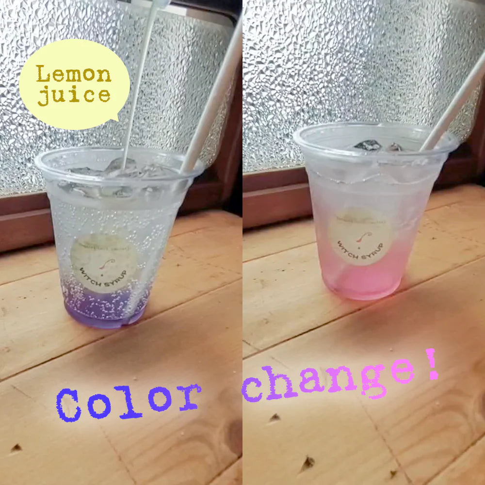 ・レモンジュース+冷水+魔女のシロップ「藍色」=桜色レモネード